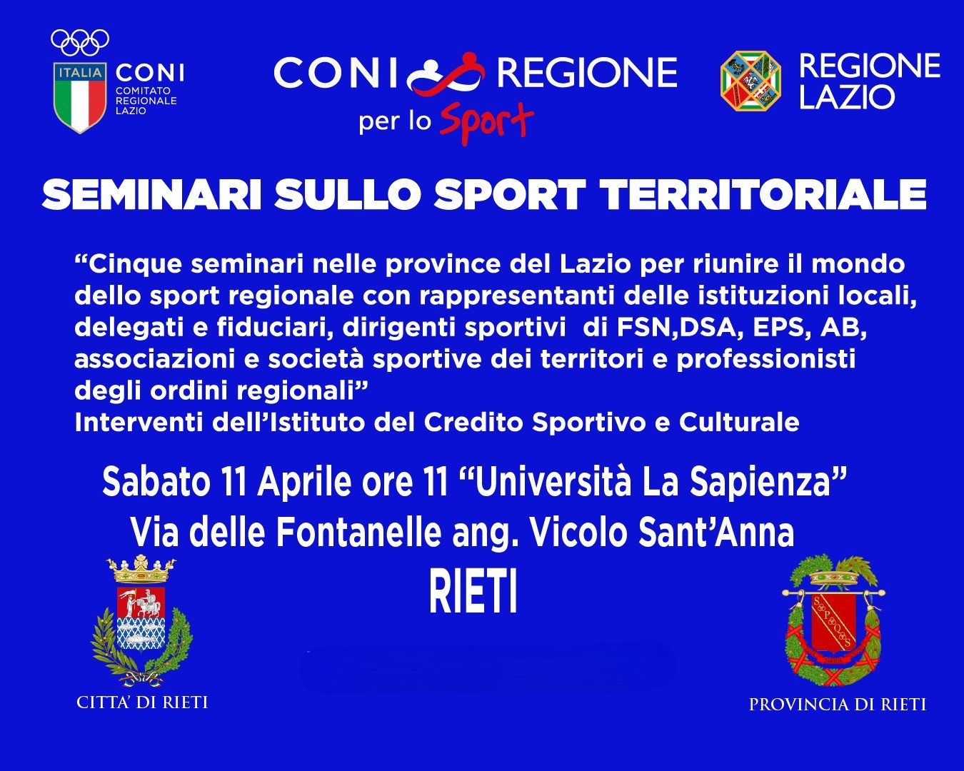 News 10 Apr 2026 SABATO 11 APRILE, A RIETI, IL TERZO SEMINARIO SULLO SPORT TERRITORIALE DEL CONI LAZIO Dopo le tappe di Latina e Viterbo, sabato 11 aprile si svolgerà il terzo seminario promosso dal CONI Lazio dedicato allo sport territoriale, con un focus particolare sull’impiantistica sportiva, organizzato nell’ambito del Protocollo “CONI e...