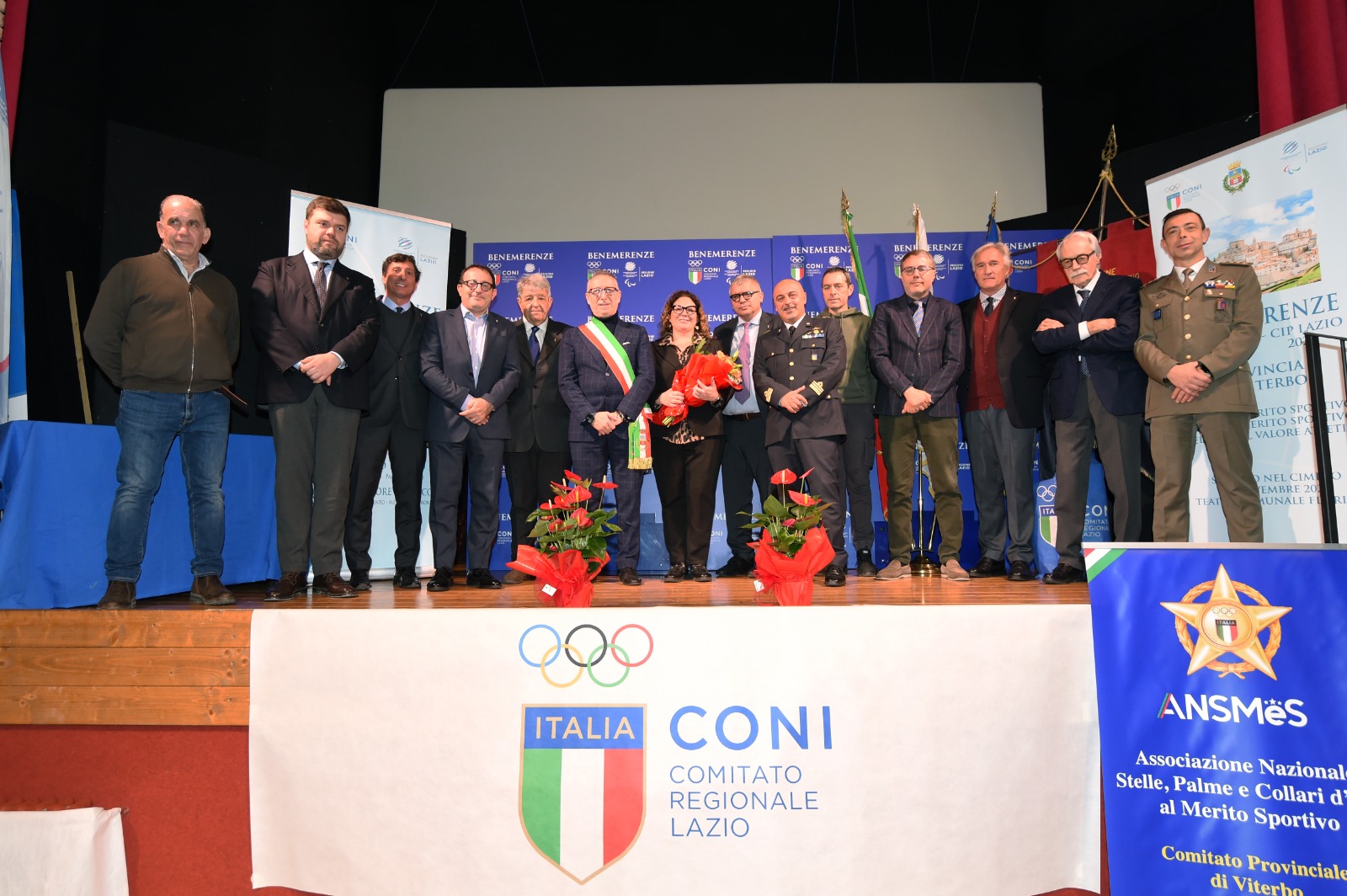 Al Teatro Florida di Soriano nel Cimino (VT), il Presidente della Provincia di Viterbo Alessandro Romoli, l’Assessore allo Sport del Comune di Viterbo Emanuele Aronne, il Sindaco di Soriano nel Cimino Roberto Camilli, l’Assessore allo Sport di Soriano nel Cimino Luciano Perugini, il Presidente del CONI Lazio Alessandro Cochi, il vice Presidente Vicario Andrea Ruggeri, il membro di Giunta Andrea Frateiacci, il Delegato provinciale Ugo Baldi, il Coordinatore tecnico provinciale Adriano Ruggiero, i presidenti regionali delle Federazioni Sportive Nazionali, il Delegato provinciale del CIP Marco Pallucca, il Presidente provinciale dell’Ansmes Alessandro Pica, hanno premiato dirigenti, società e atleti della provincia di Viterbo che si sono contraddistinti nel 2023.